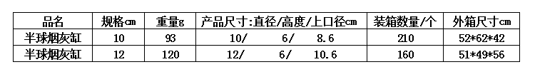半球烟灰缸规格
